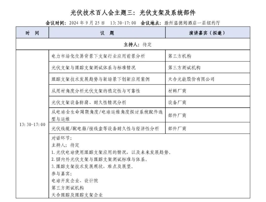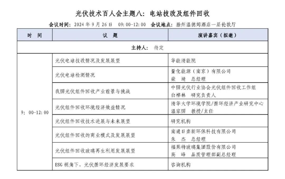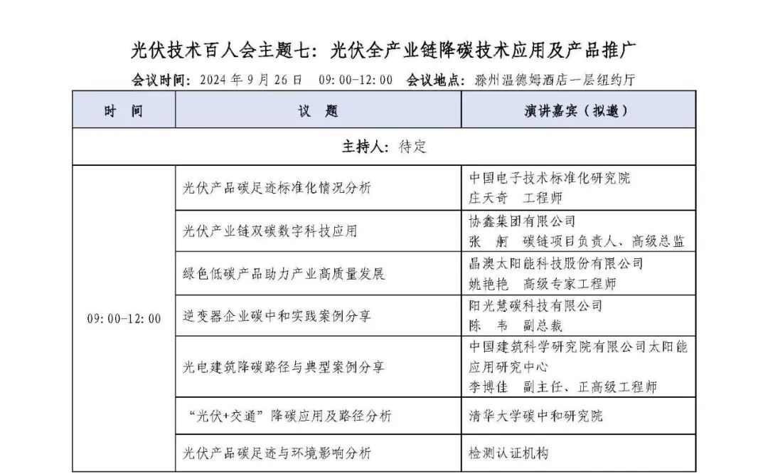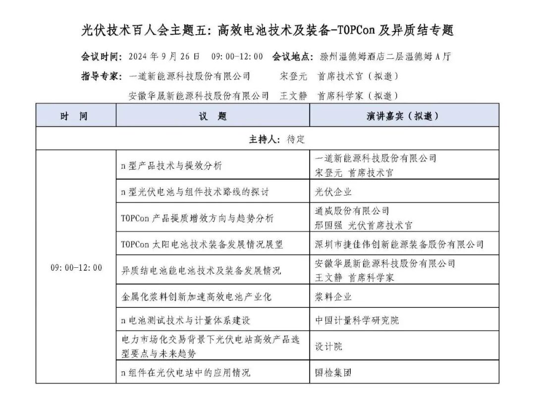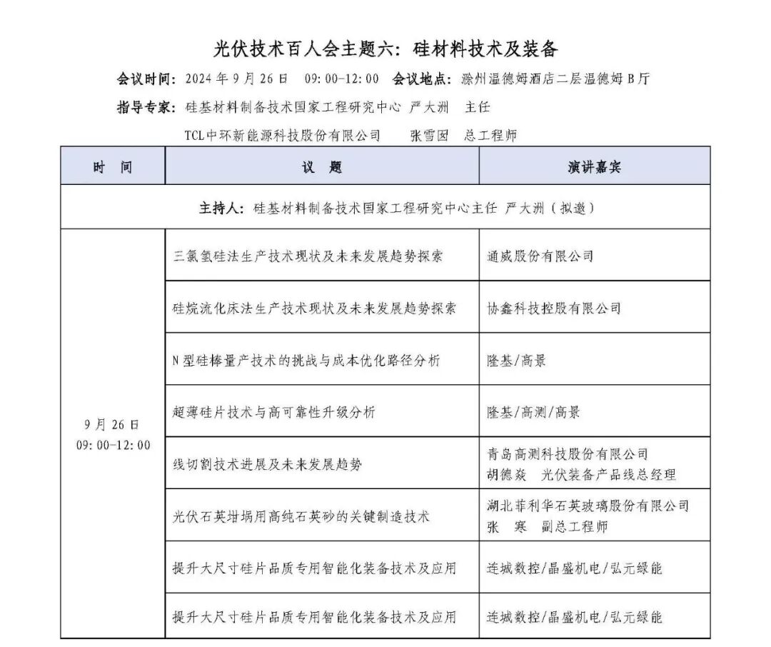 为更好地促进行业交流,中国光伏行业协会拟于2024年9月25-26日在安徽省滁州市召开“2024光伏行业技术创新大会”及同期多场“2024光伏技术百人会专题论坛”。技术创新大会及技术百人会作为协会的年度品牌会议,旨在推动行业技术交流与合作,为行业技术发展带来新的思路与方向,助力加速技术创新与产业发展。