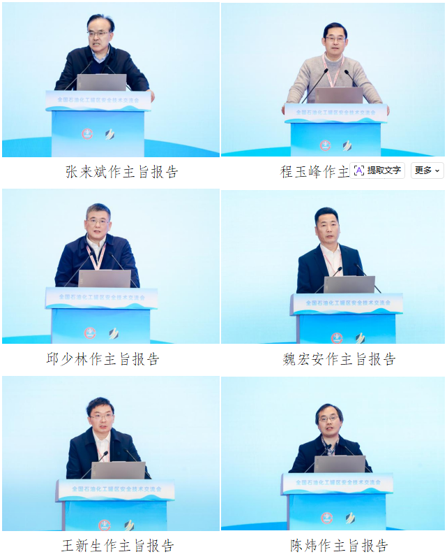 在主旨报告环节,张来斌、程玉峰、邱少林、魏宏安、王新生、陈炜等40位院士和专家围绕罐区安全风险智能化管控、VOCs 治理与泄漏防控、设备防腐蚀与新材料应用、数字化监测与应急能力提升等核心议题展开深入探讨。