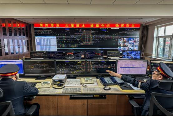 “信号员,D18907次3道停车开放信号。”此时运转室热火朝天,控制台的指示灯不停闪烁,对讲机里的指令声、电话铃声此起彼伏,交织成能源保供的专属旋律。