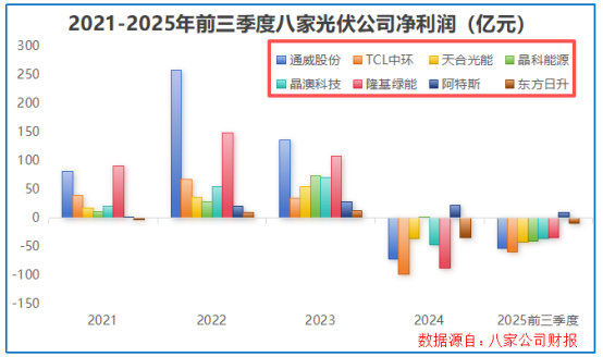仅前三季度,通威股份、隆基绿能等如下图八家巨头就共亏损了260.68亿元。