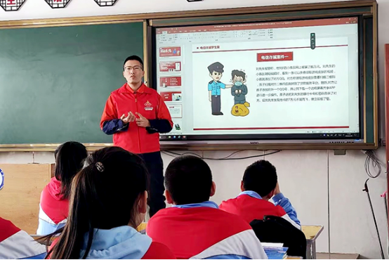 图为宝日希勒矿职工作为呼伦贝尔市志愿者开展普法进校园活动