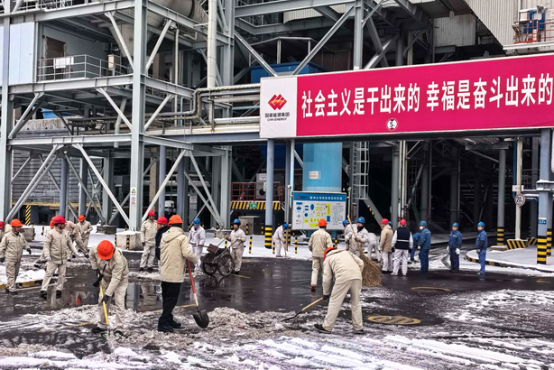 图为宿州电厂清扫主厂房前道路积雪