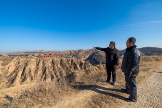 冬日,米脂县杨家沟与高西沟的山峁间,尽是沟壑纵横的苍茫,就在这一片苍茫之中,一排排深蓝色的光伏板错落有致地铺展在山坡上,在冬日暖阳的映照下熠熠生辉。