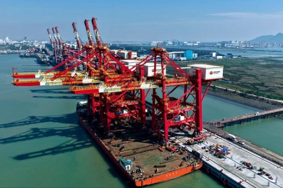 11月25日,国家能源集团港口公司珠海港务散货码头工程新购置的3台桥式抓斗卸船机、2台装船机顺利完成运输上岸与精准落轨作业。至此,项目8台大型单机设备已全部完成制造任务,正式进入安装调试阶段,较原计划提前15天达成年度关键建设节点,为工程高质量投产及年底生产任务攻坚筑牢坚实支撑。