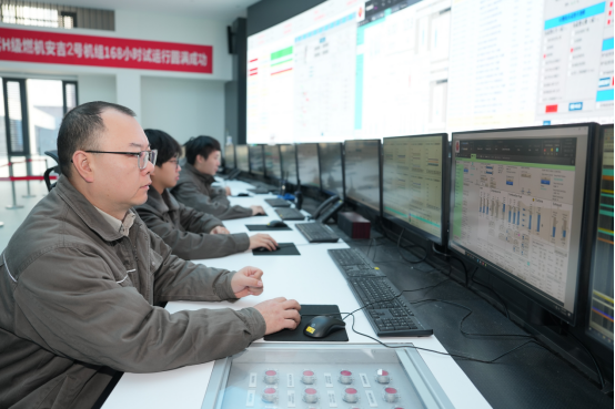 安吉电厂运行人员集中监盘,实时监控负荷、温度、压力等关键参数,精细调整运行状态,全力保障机组稳定运行。(吕泓锦 薛欣)