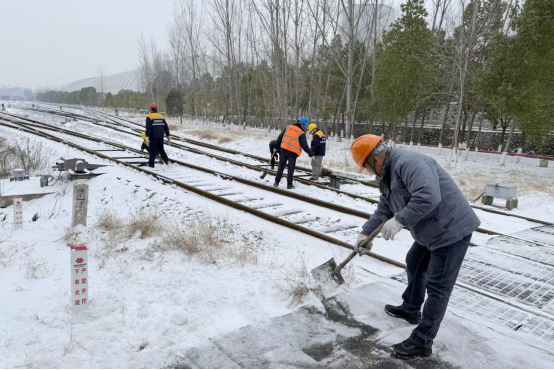 为提升接卸效率,燃料运维部全员上阵、分工协作:有人挥舞雪铲清理坡道和传送带积雪,有人背着融雪剂桶沿途均匀撒布,检修班组穿梭在翻车机、斗轮机之间,逐一排查设备防冻保暖情况;运行人员顶风冒雪,按时完成铁路道岔搬动、落煤筒挡板调节等操作。风雪中,他们的身影与机械的轰鸣声交织在一起,奏响了一曲攻坚克难的保供赞歌。